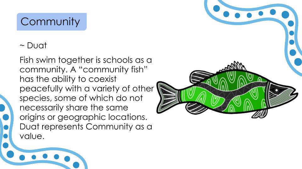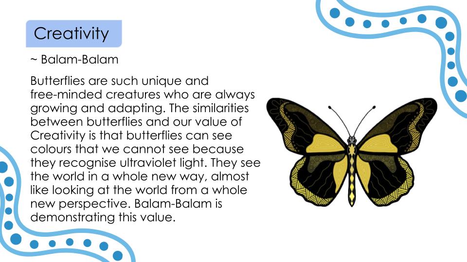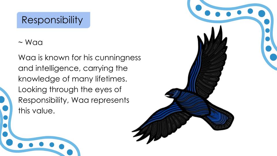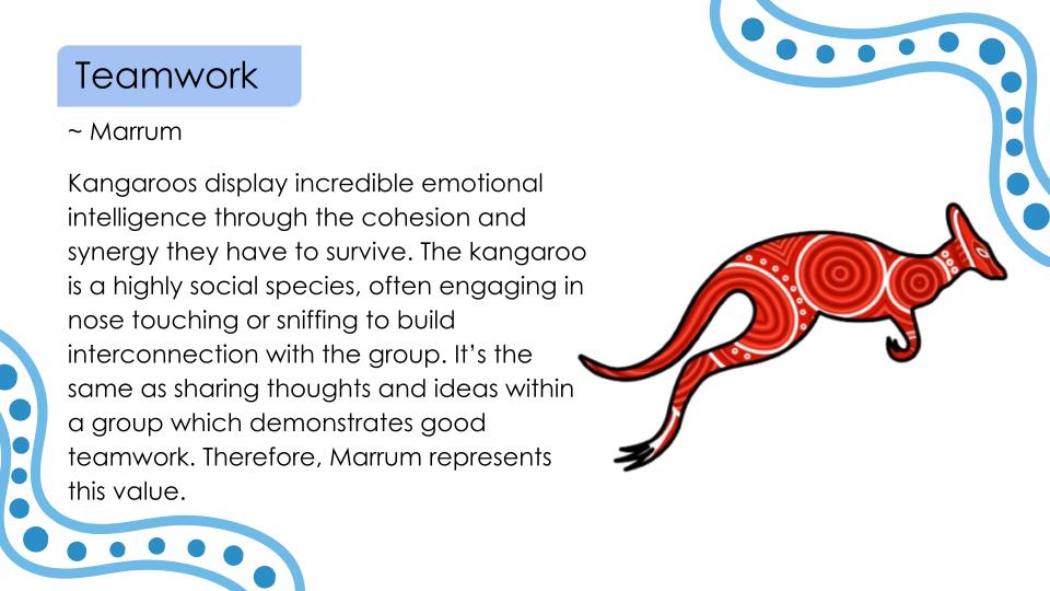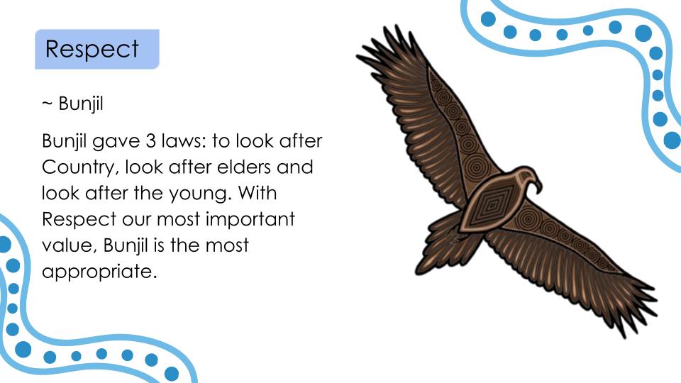At Glendal Primary School, our six core values—Respect, Responsibility, Teamwork, Resilience, Community, and Creativity—guide every aspect of school life. These values are brought to life through meaningful mascot representations that connect deeply with cultural and natural symbols. Each mascot embodies the essence of its value, helping students understand and internalise these principles in engaging and memorable ways.